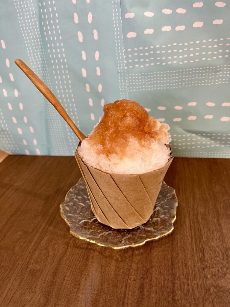 ④夏場限定の珍しい「有機栽培茶」のかき氷
