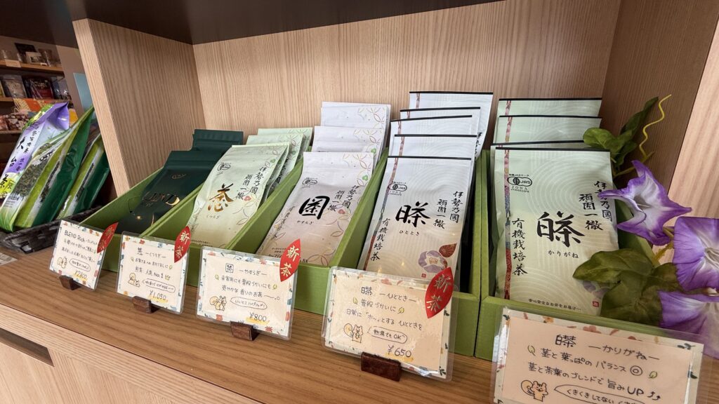 取り扱うお茶の種類も実に多彩で、定番の緑茶はもちろん、まろやかな和紅茶や香ばしいほうじ茶まで幅広くラインナップ。カフェメニューだけでなく、お土産用の茶葉も豊富に取りそろえています。