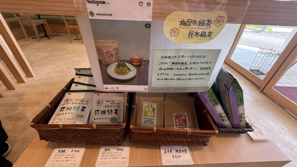 カフェ内には、自家栽培茶を中心に、こだわりの商品がずらり。