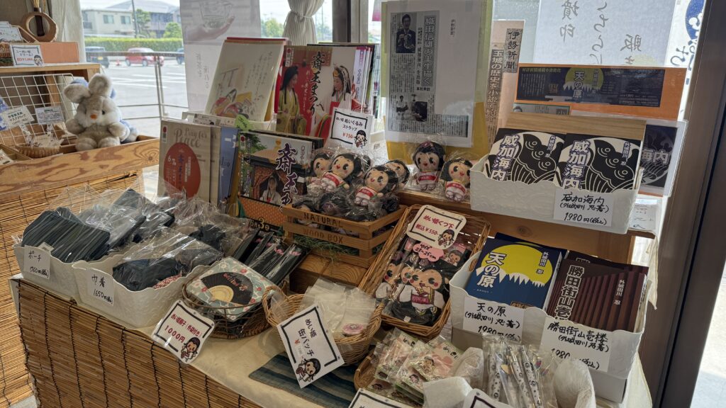 さらに駐車場横のアンテナショップ 「あざふるさと」 では、斎王モチーフのマスコット “めい姫” グッズやお土産などを販売。