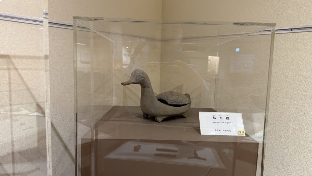 硯といえば長方形が一般的ですが、斎宮では愛らしい円形や優美な鳥のシルエットの全国でも珍しい硯が見つかっています。高位の役人や文化人が存在した証しだそうですよ。