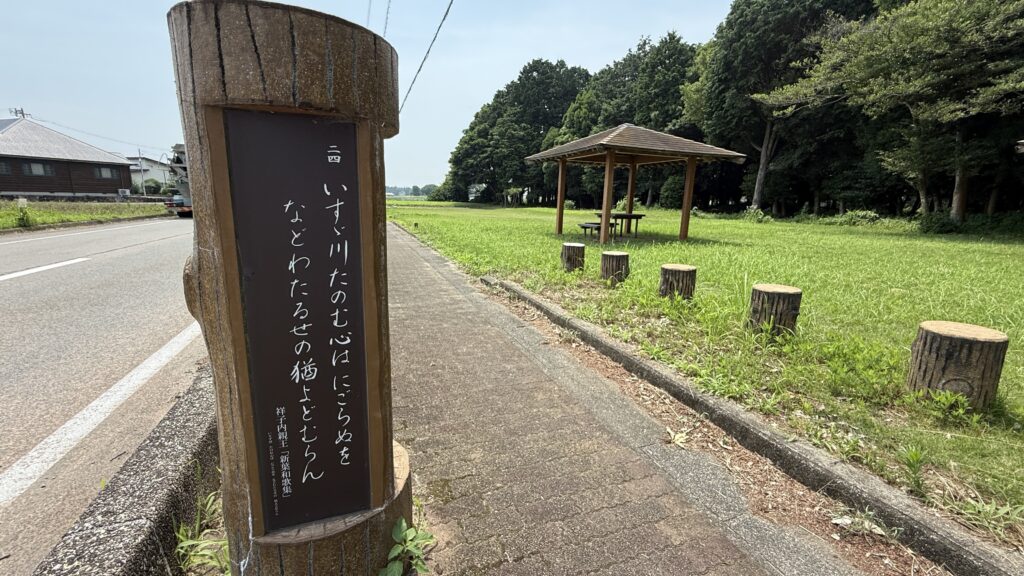 斎宮歴史博物館から東へ延びる約1.5 kmの遊歩道には、斎王や女房たちが詠んだ和歌を刻んだ石碑が24基、等間隔に並んでいます。