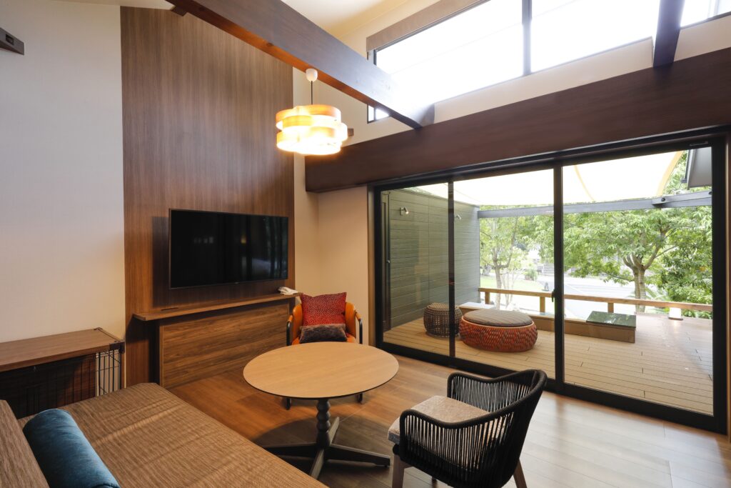「愛犬ファースト」を徹底したヴィラ。ドッグランもあり、愛犬も思いっきり駆け回ることができます。