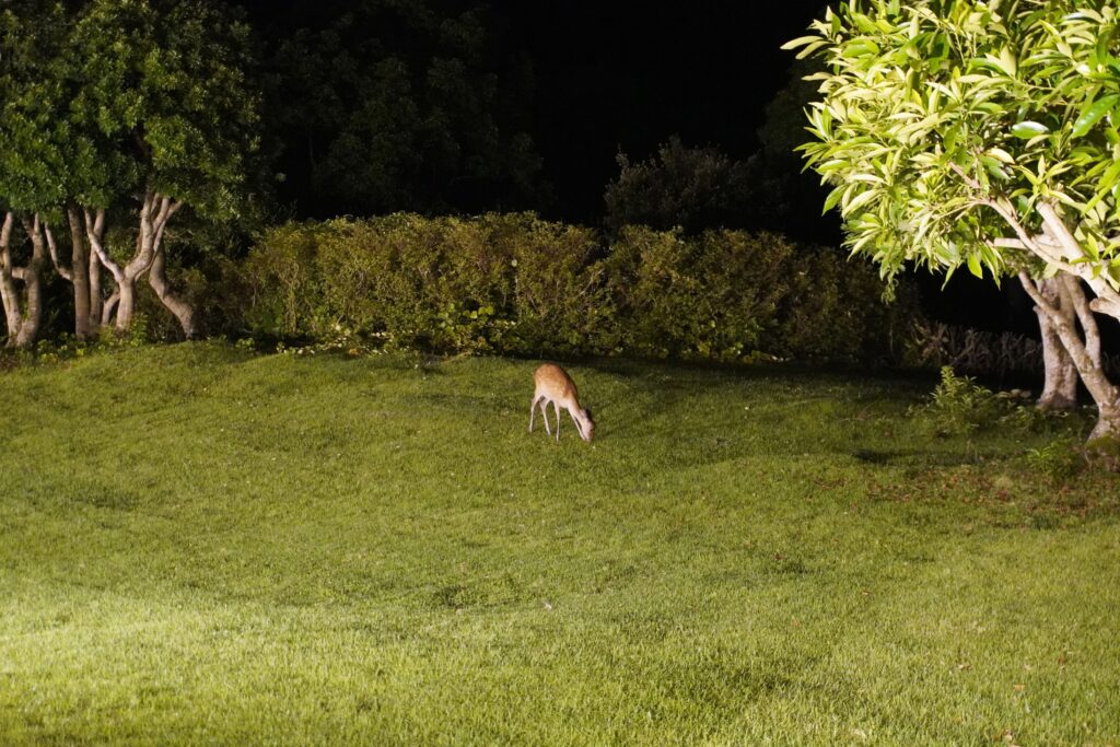 1階のテラス前に鹿などの野生動物が現れることもあり、自然との距離の近さに思わずほっこり。