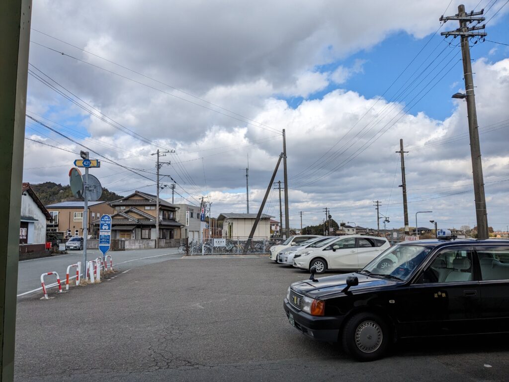 多気駅に到着すると、駅前はところどころ民家があるのどかな雰囲気。周辺を見渡しても、タクシーやバスの姿はありません。