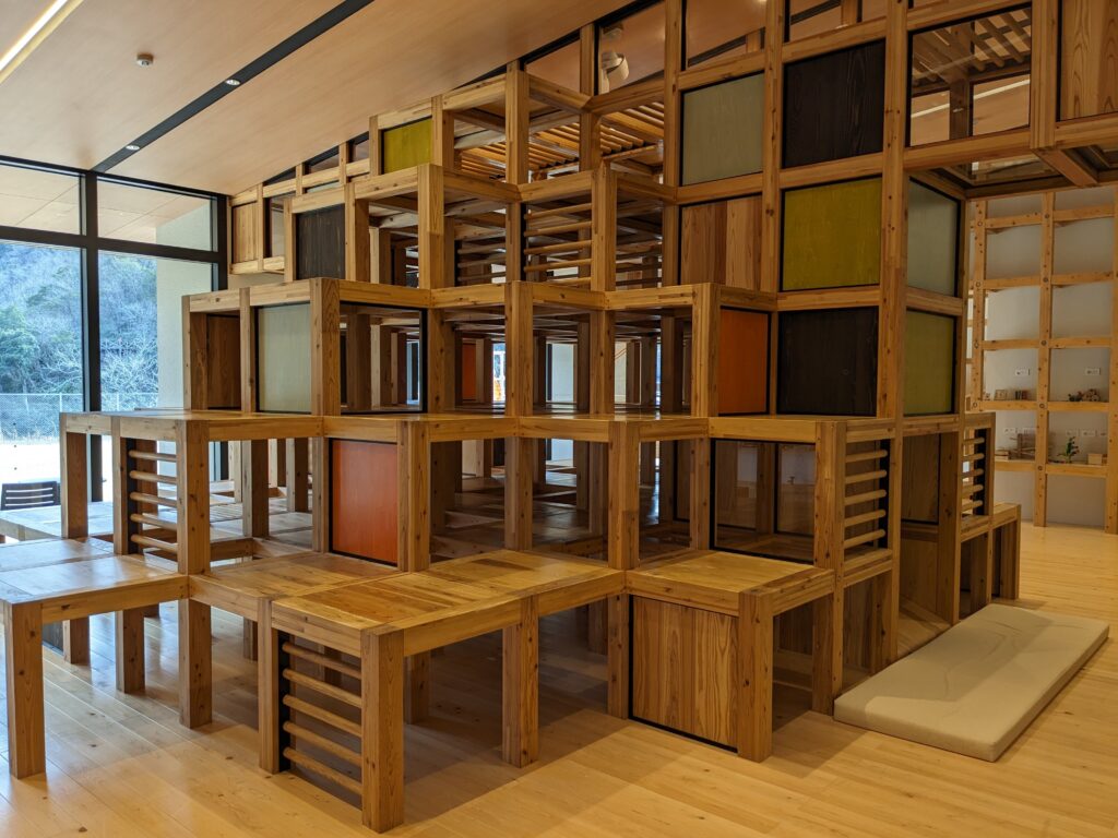 「木育エリア」は、木や森に触れ、遊びながら学べる体験型施設。