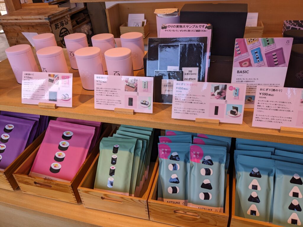 こちらのお店に行くと驚くのは、「海苔屋さんの本物の海苔」がポップでおしゃれなデザインで販売されていることです。