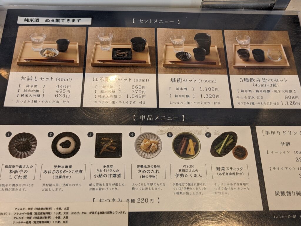 おつまみもいくつかありますが、絶品は「多気町うおすけさんの小鮎の甘露煮」。鮎の苦味がしっかりときいて甘さ控えめで、日本酒との相性がバツグン!