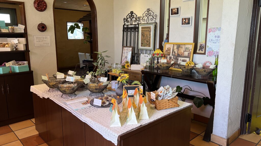 店内は落ち着いたシックな雰囲気で、ゆっくりとケーキや焼き菓子を選べます。