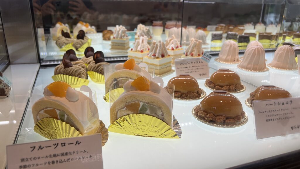 お店に入るとショーケースに宝石のようにケーキが並んでいて、数も多くついつい悩んでしまいます。でもご安心ください、そんな時は店員さんがケーキの特徴を優しく教えてくれるので、自分好みのケーキを見つけることができますよ。