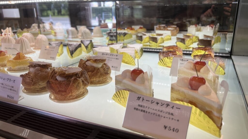 たくさんの種類から選びたい方は、ぜひ午前中に行ってみてくださいね。写真のようなきれいなケーキがショーケースに並ぶ圧巻の光景からケーキを選ぶことができます!