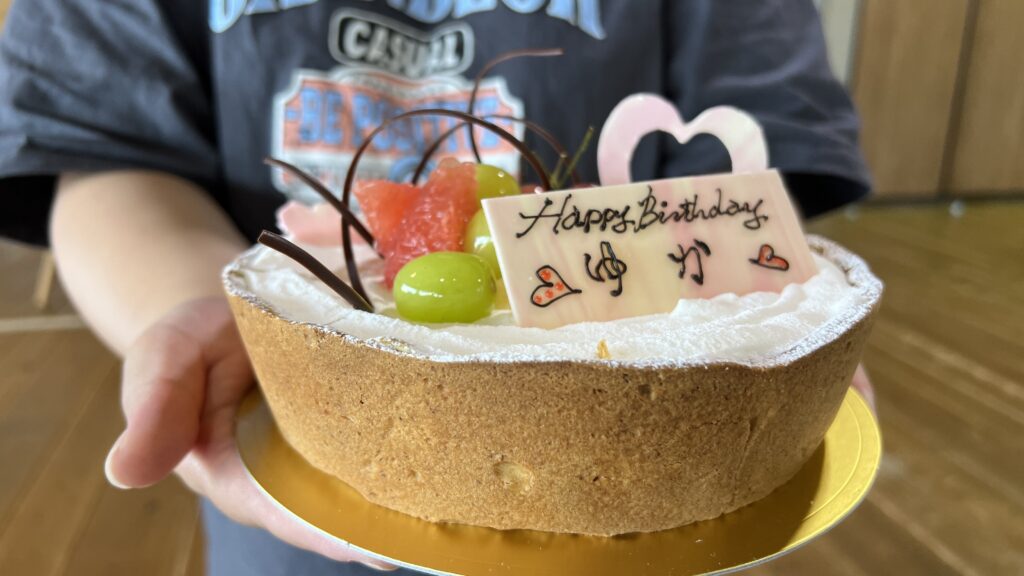 当日ケーキの受け取りに行くと誕生日の方の名前が店頭に書かれている、嬉しい心遣いもありましたよ。