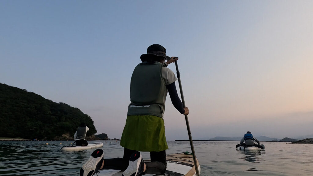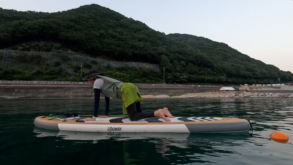 SUPに乗って海上のヨガスポットに移動するためには、パドルの使い方をマスターする必要があります。