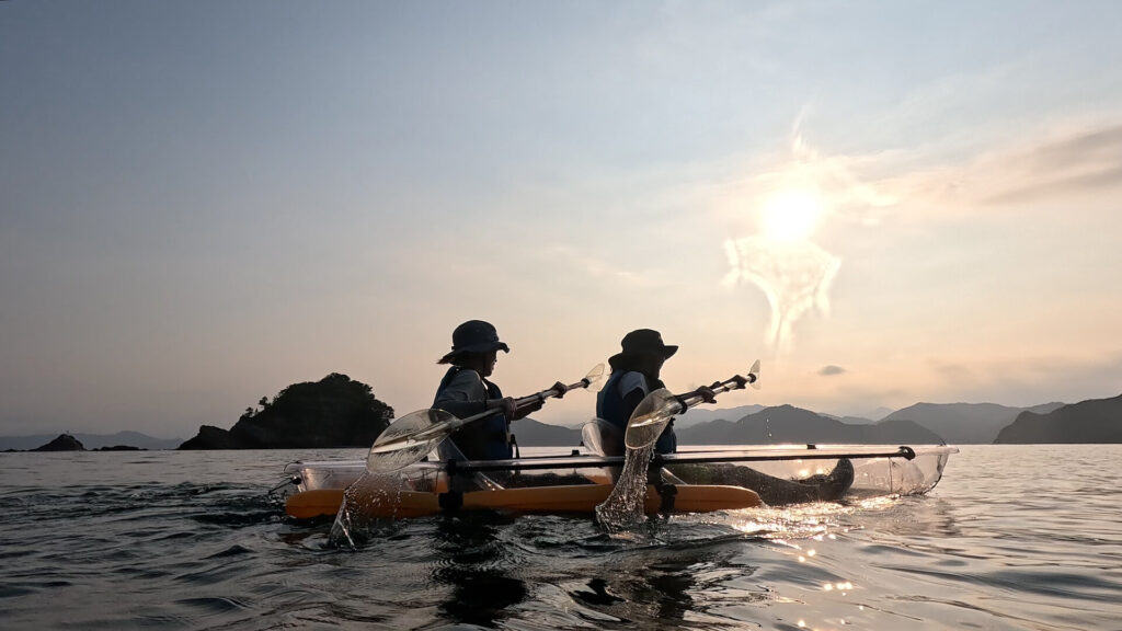 また、カヤックの他にも城ノ浜ビーチでは、SUP(スタンドアップパドルボード)のアクティビティ体験や、夕焼けの時間帯にSUP上でヨガをしてリラックスできる体験もあります。