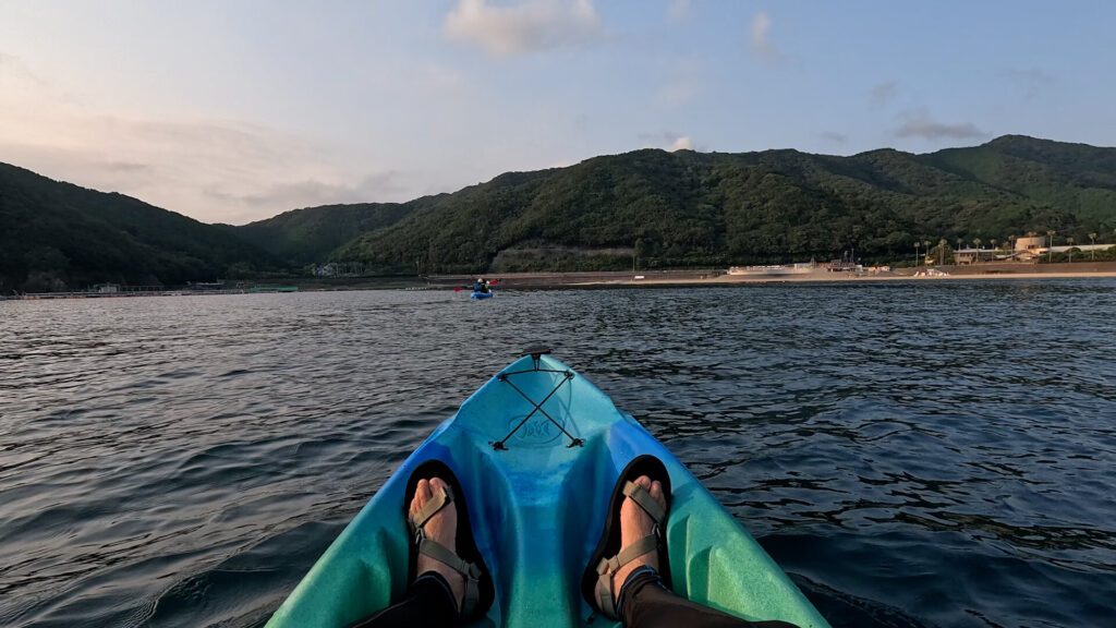 わたしはカヤック初挑戦ですが、勇気を出して遠征コースを選んで体験してみました。一人乗りのカヤックを選んだので途中しんどい時もありましたが、沖まで出られた感動とちょうどいい疲労感で楽しむことができました。