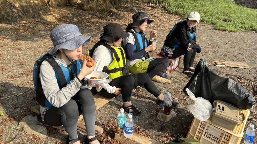 飲み物と軽食は、同行するインストラクターがカヤックで運んでくれるので、お任せでOK。