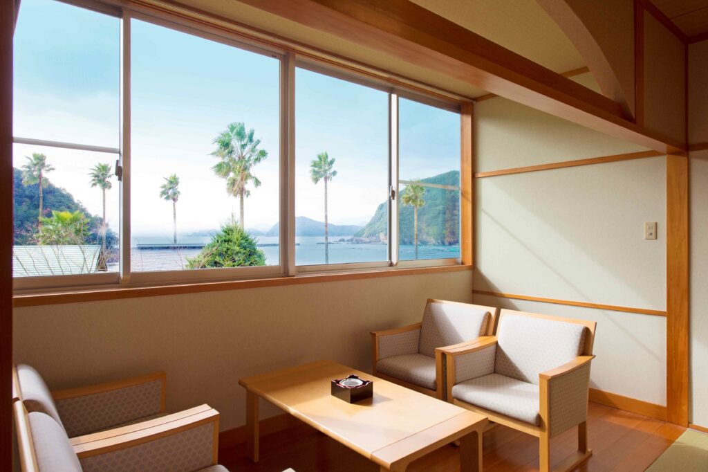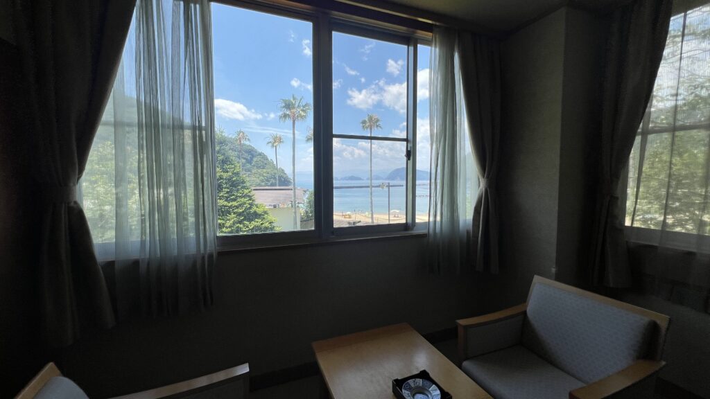外が暗くなる前に、目の前に広がる城ノ浜の海の景色をぜひお楽しみください!