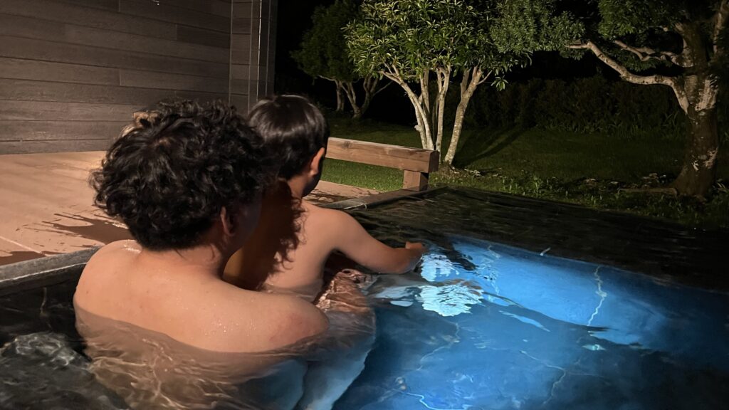 夕食を楽しんだ後は部屋に戻って露天風呂で団欒の時間!
