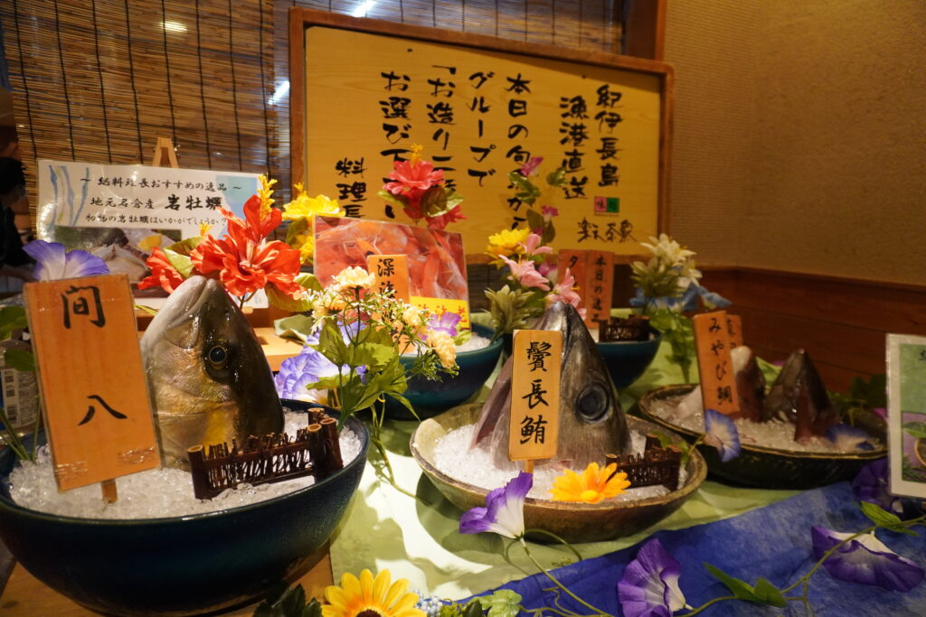 季の座の1番の魅力だと思う食事は、料理長が自ら市場に行って目利きしてきた海鮮です。 料理長いわく、紀北町の紀伊長島港は三重県で獲れる魚の種類が1番豊富なんだとか。