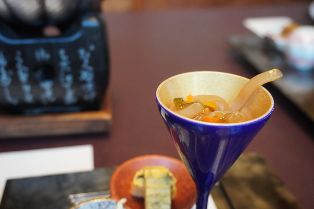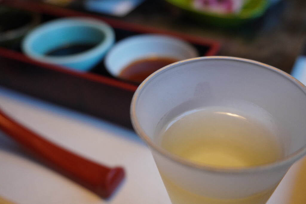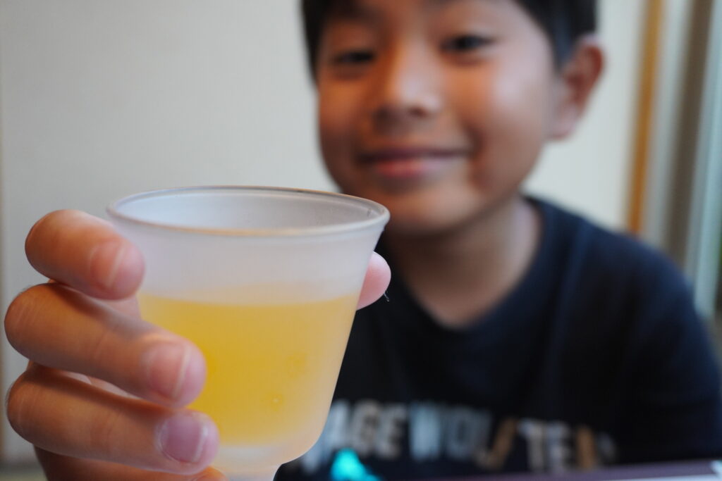 季の座の夕食では大人だけ食前酒があるのではなく、同じ容器で子どもにはジュースが用意されていました!