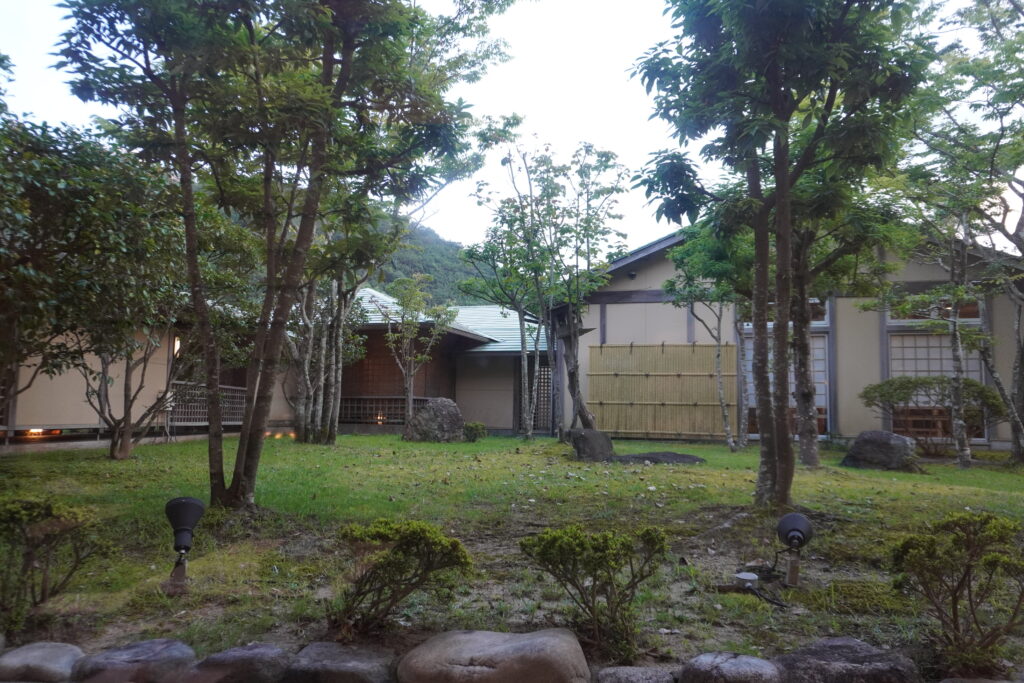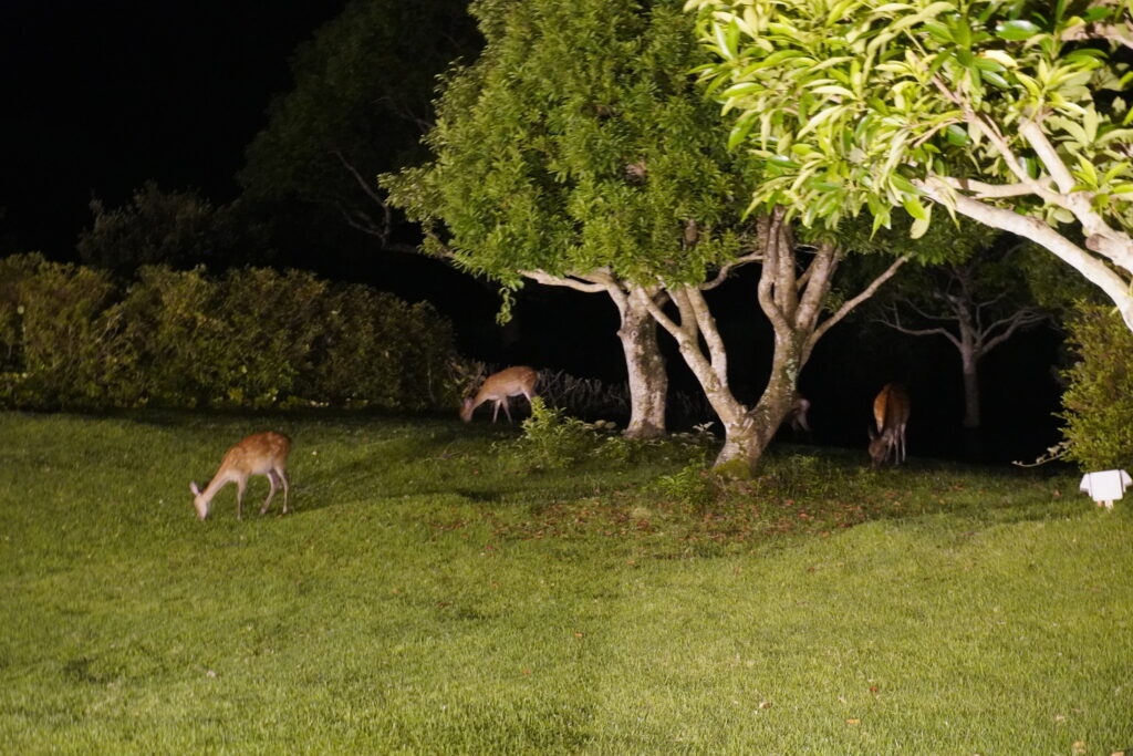露天風呂で癒されていると、なんと目の前に鹿が現れました! こちらが話していてもお構いなく芝を食べていて、小学生の親戚も大興奮でした。