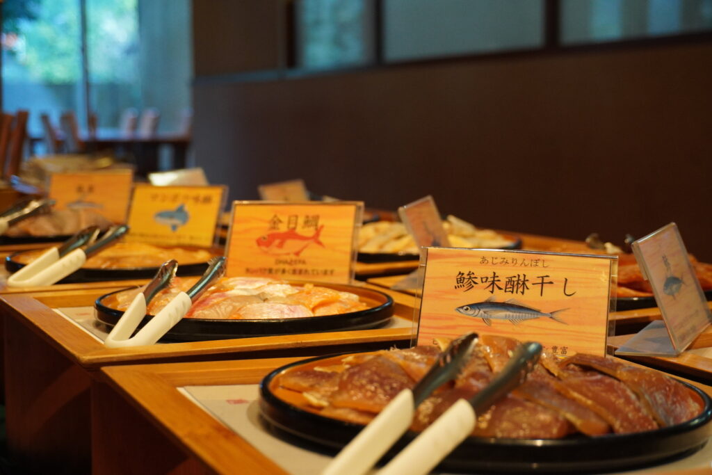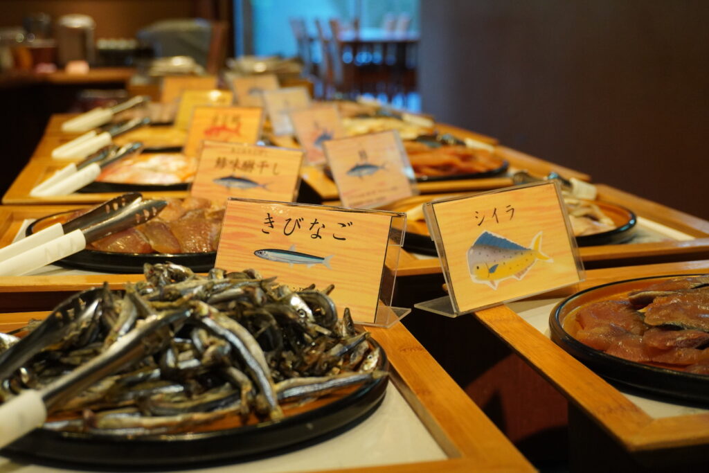 全席に七輪をご準備していただけるので、好きな干物を選んで、焼いて食べるのが季の座の朝食の醍醐味ですよ!