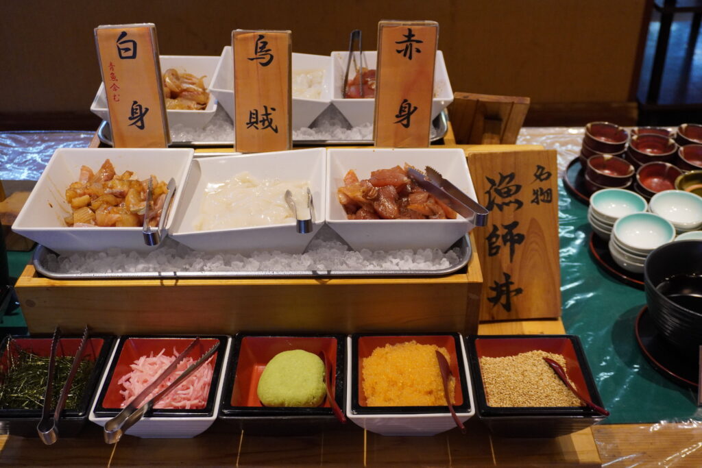 干物の他にも海鮮が朝から楽しめます! 熱々のコシヒカリに海鮮をのせて、自分好みの漁師丼を作れますよ。