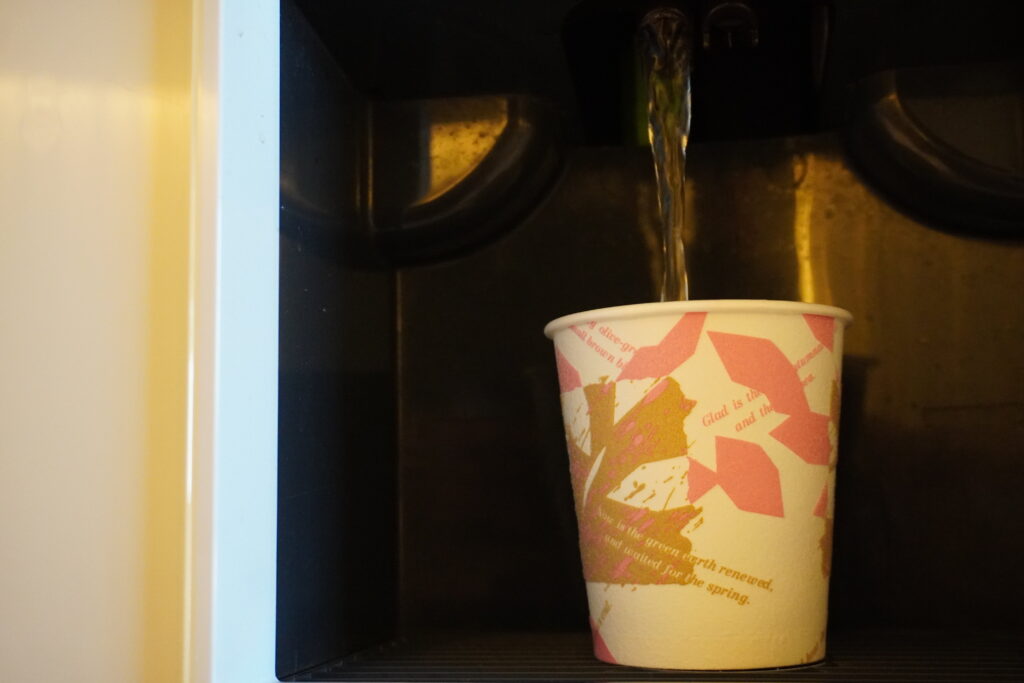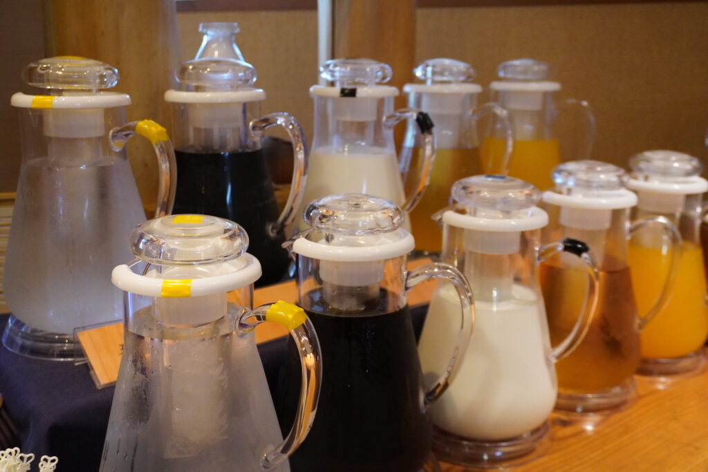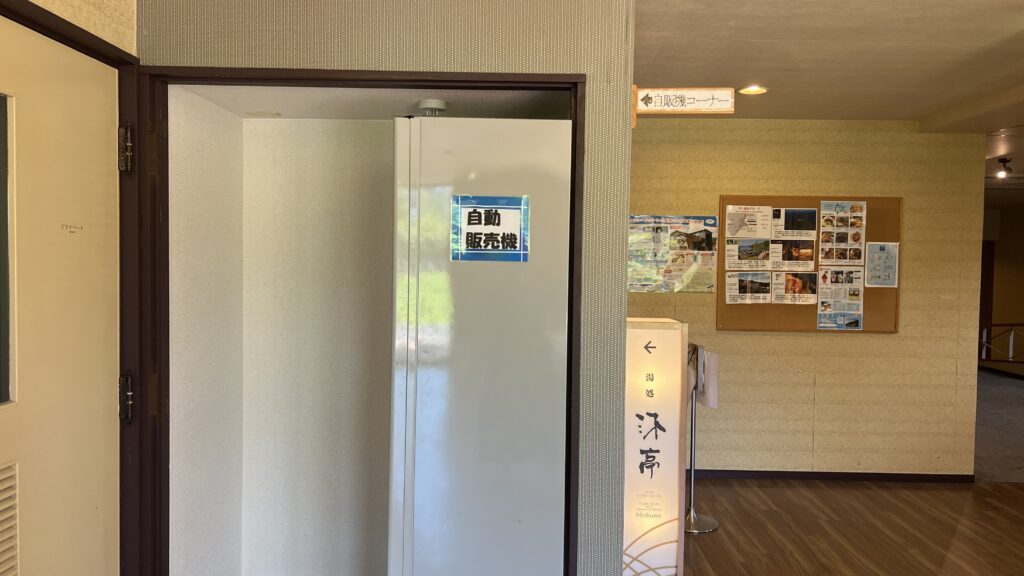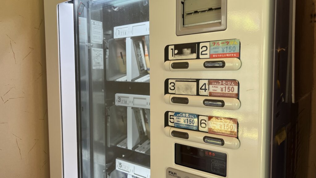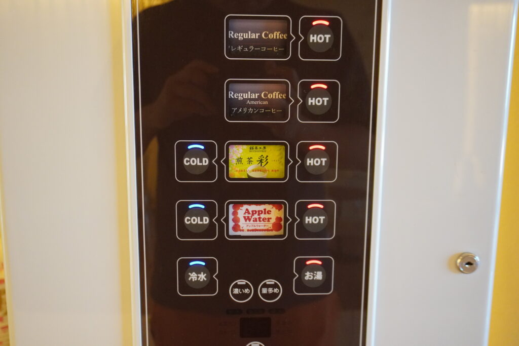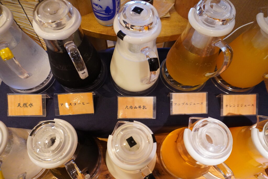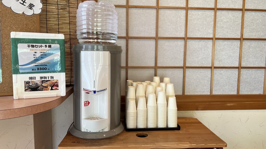 無料の水サービスや乳製品の自動販売機などがあるので、温泉で温かくなったところで飲むと美味しいですよ!