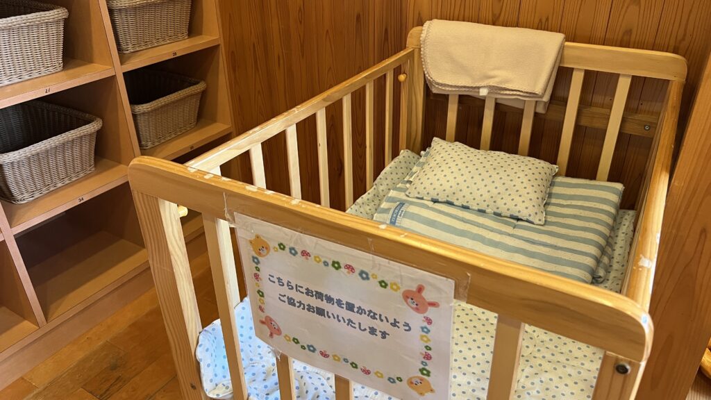 女性風呂にはベビーベッドも完備されているので、小さなお子さん連れの場合は、女性風呂に入ることをおすすめします。