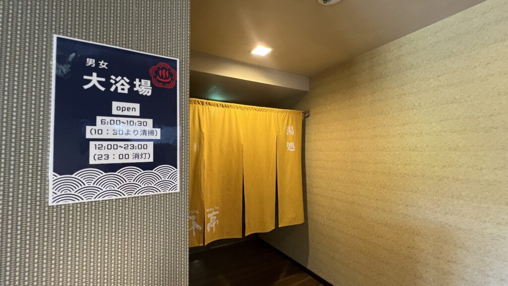 大浴場は1階の食事どころの左側にあるこの暖簾が目印です。