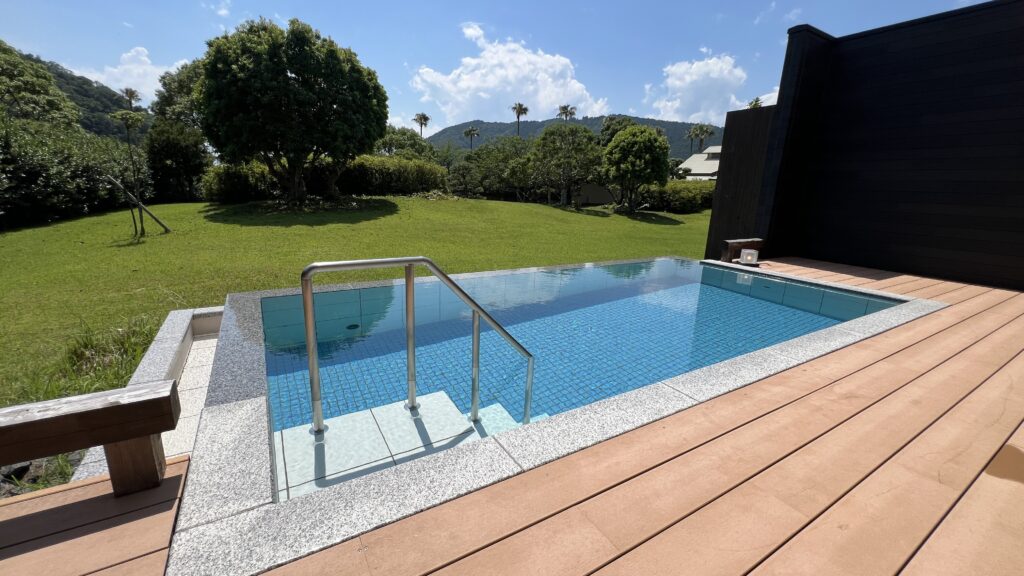 1室限定のプール付きのスイートルーム。プールは水深1.2mあり、大人でも平泳ぎができるサイズ感です!