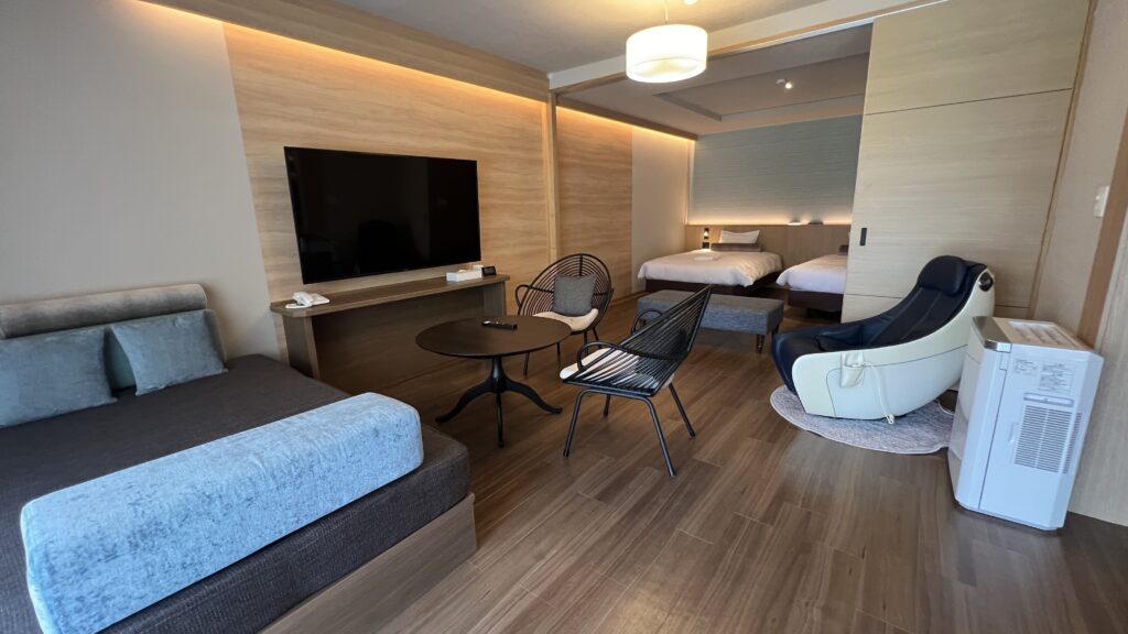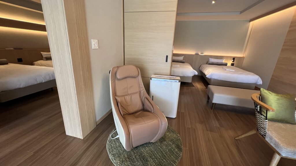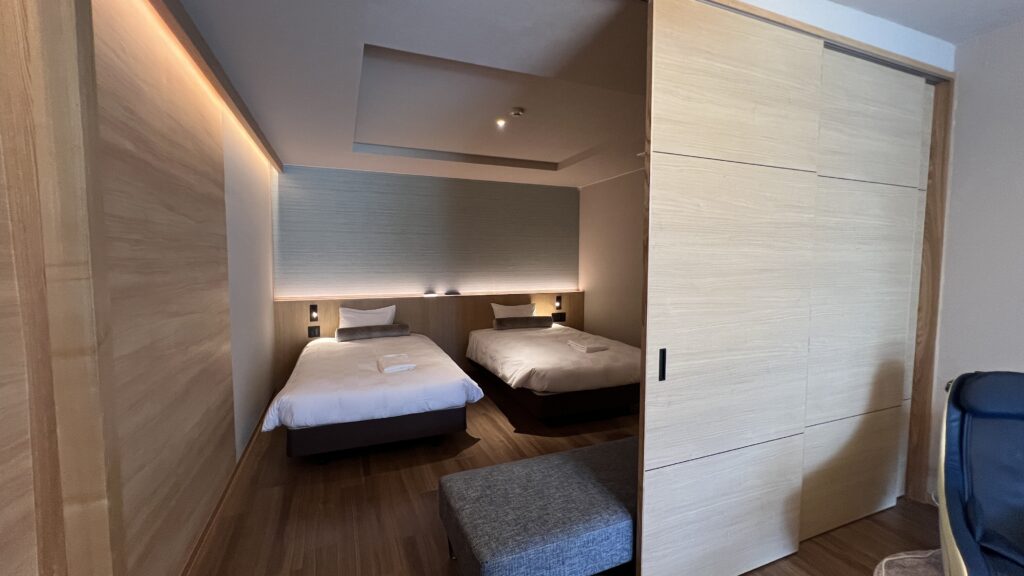 今回は3人での宿泊だったため、通常ソファになっている箇所がベッド仕様になっています。
