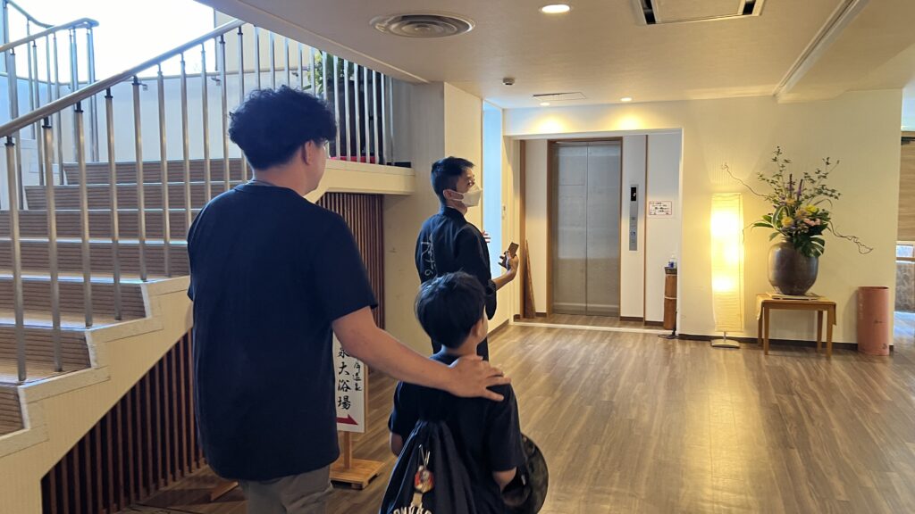 チェックインを終えると、スタッフさんが館内を案内しながら部屋まで送り届けてくれます。