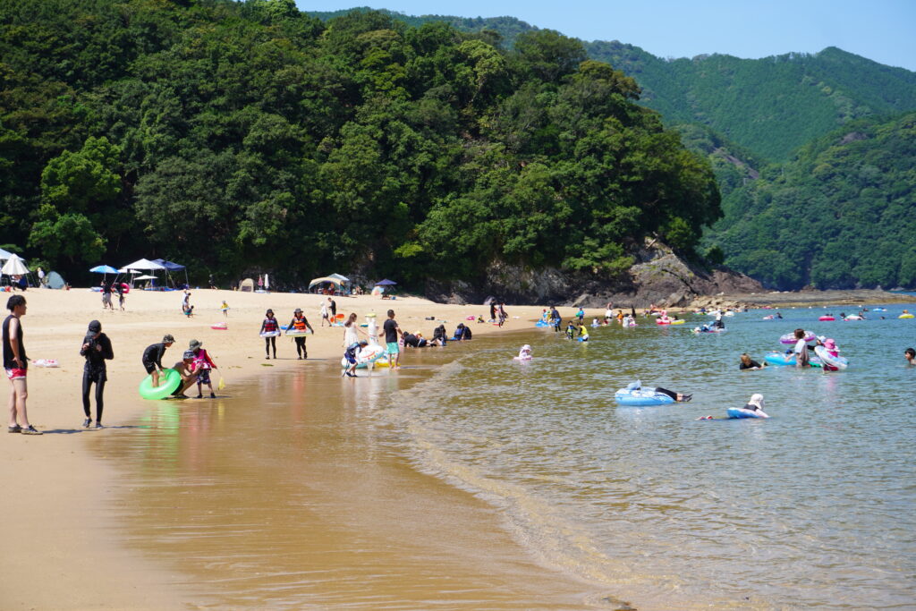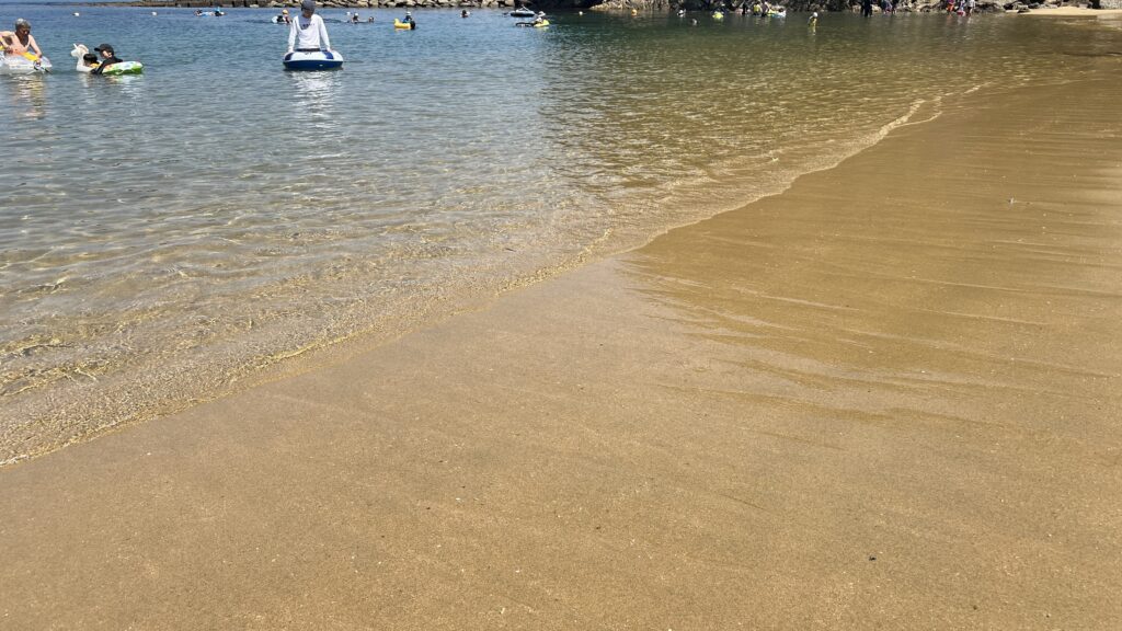 水は透き通っていて足元が見え、大きな波も来ないので、お子さんが海に対して恐怖心を抱いてしまうこともありません!小さなお子さんの海遊びデビューにはぴったりな海水浴場となっています。