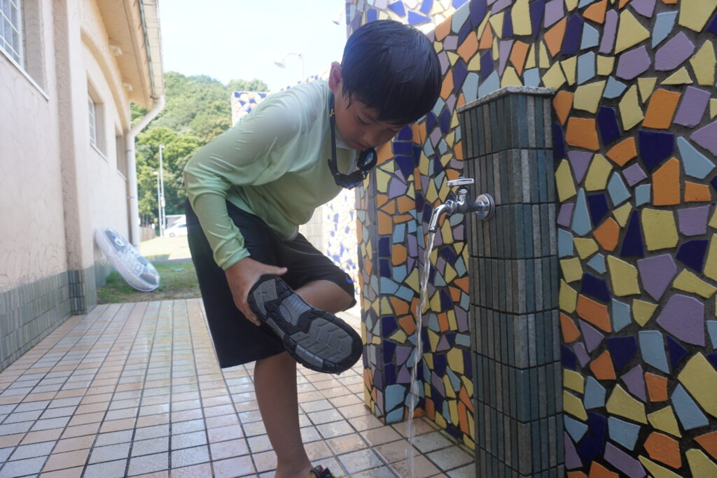 南国のような美しい海に、子どもたちは自ら走って飛び込んでいきます。