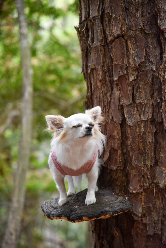 小型のワンちゃんはサルノコシカケに乗って写真を撮ることもできますよ。