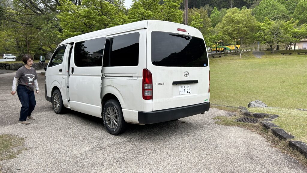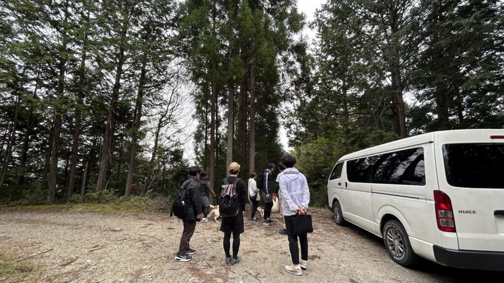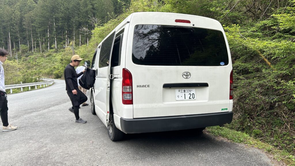 集合場所から目的地の山まで10人乗りのワンボックスカーで30分ほど移動します。