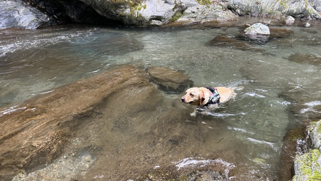 濡れたままでも乗車可能なので、ワンちゃんも人も思いっきり川で遊ぶことができます。