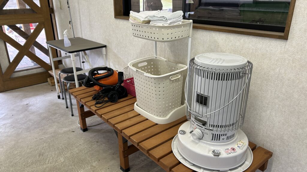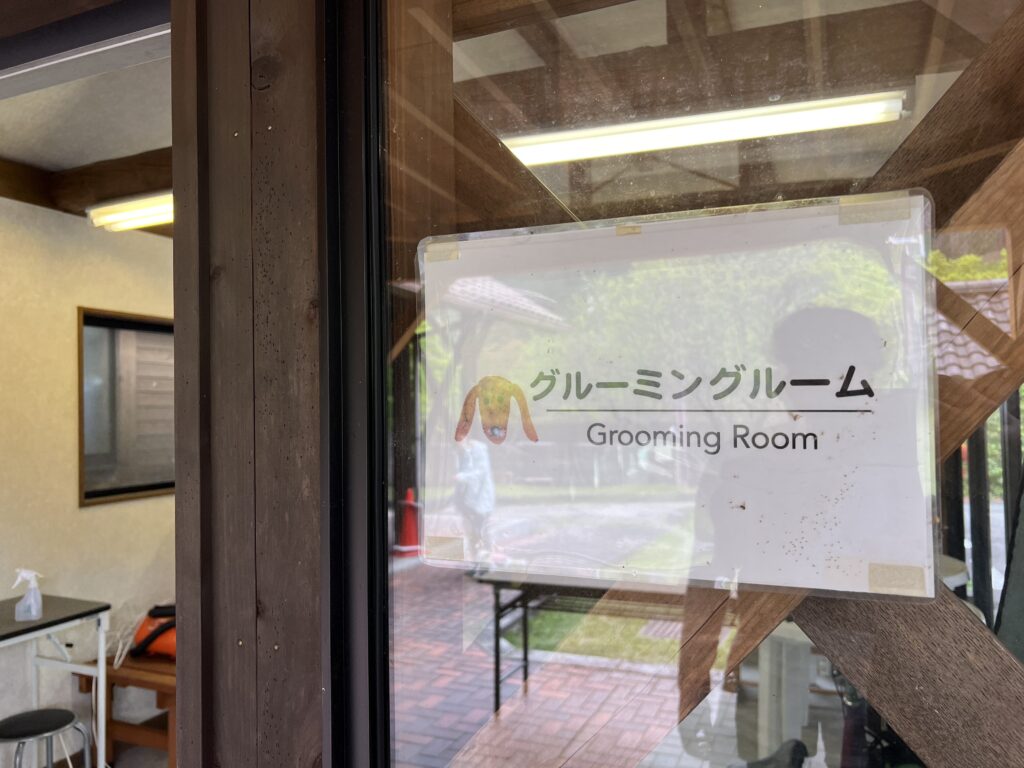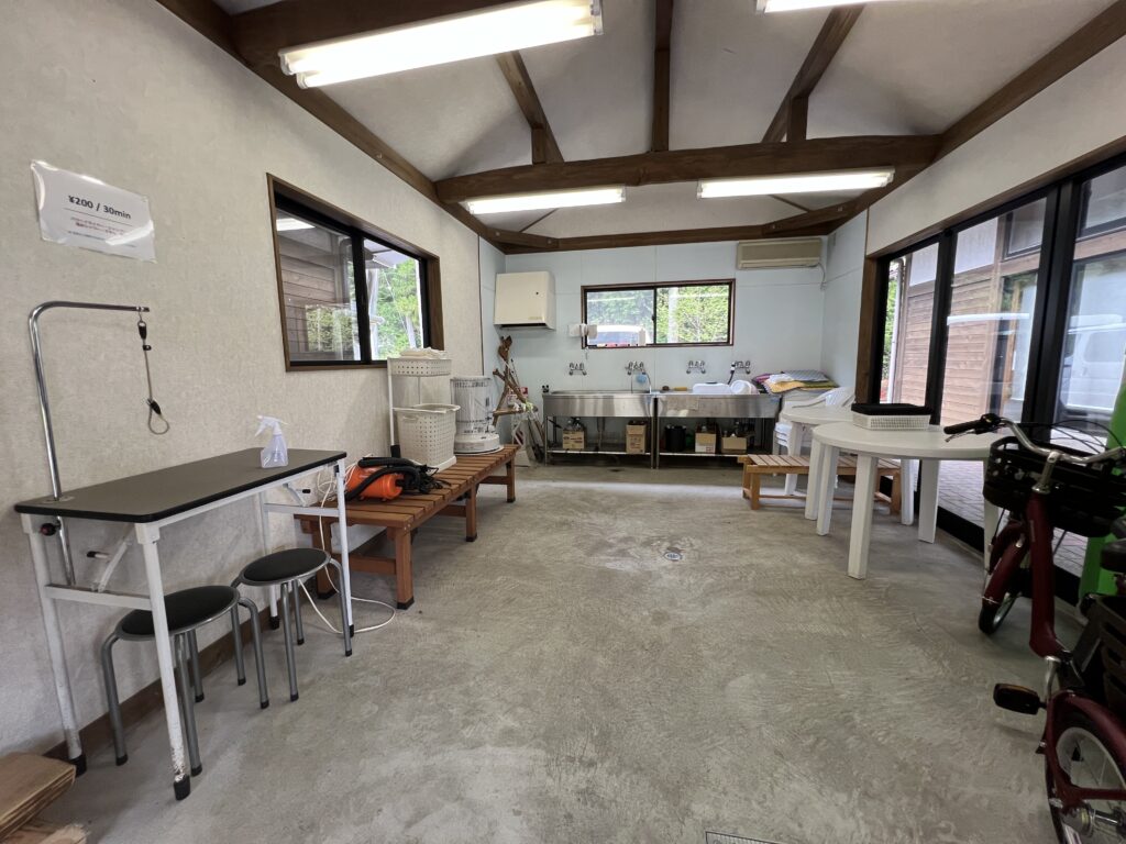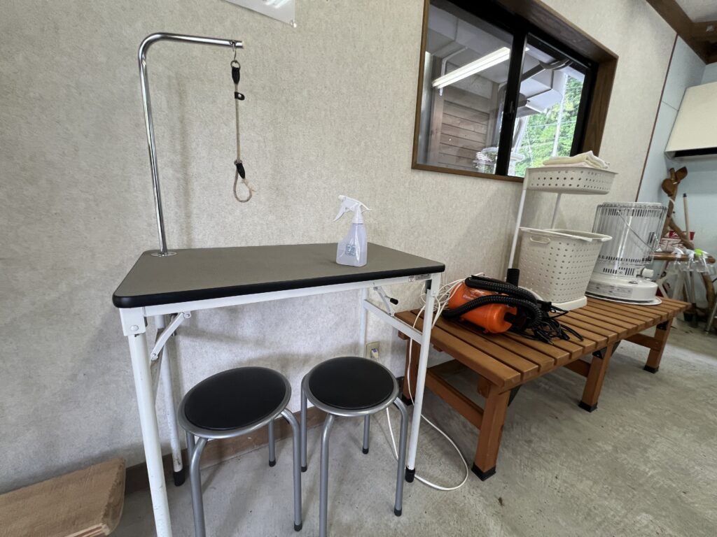 朝説明を受けた場所にはグルーミングルームが完備されています。長髪のワンちゃんでも全く問題ないくらいに設備や機器が備わっているので、お手入れの準備なく山遊びへ来れるのはおすすめポイントです!