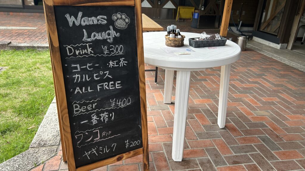 奥伊勢フォレストピアの駐車場に到着後、集合時間が近づいてくると集合場所のテラスからワンズ・ラフさんの看板犬「のんきくん」と「TENKIくん」の元気な鳴き声が聞こえてくるので迷うことはないですよ。