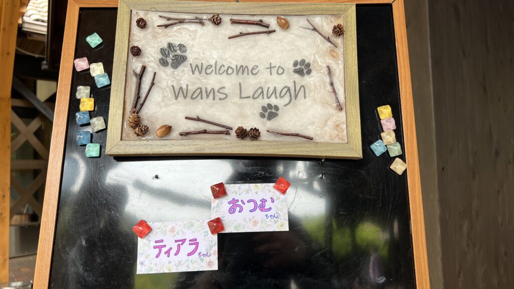 集合場所には森あそびをするワンちゃんの名前が可愛く書かれてあり、ガイドさんとその愛犬の「のんきくん・TENKIくん」が待っています!
