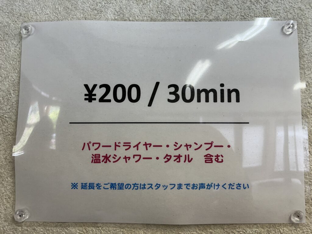 ちなみに外での水浴びは無料です!ワンちゃんだけでなく人間もサッと汚れを洗い流せますよ。