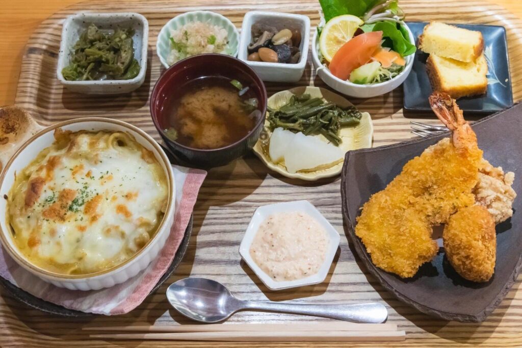 また、平日のランチタイムには、16種類ものおかずから好きなものを選べるお得なランチが登場します。揚げ物、魚料理、サラダなど、その日の気分で選べてうれしいですね。