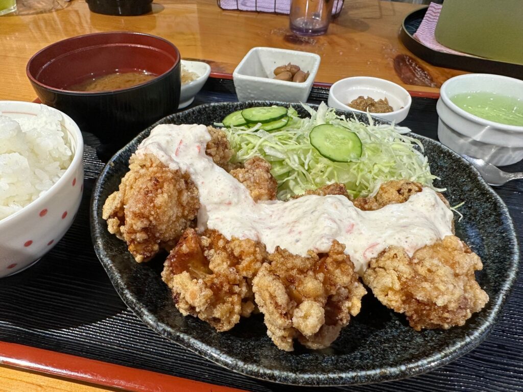 鮎料理以外にも様々な家庭料理が味わえます。地元で人気なのは、大きな唐揚げに自家製のタルタルソースがかかった「チキン南蛮」。辛いのが好きな方はタルタルソースをピリ辛で頼んでみて!ごはんが進む絶品です。