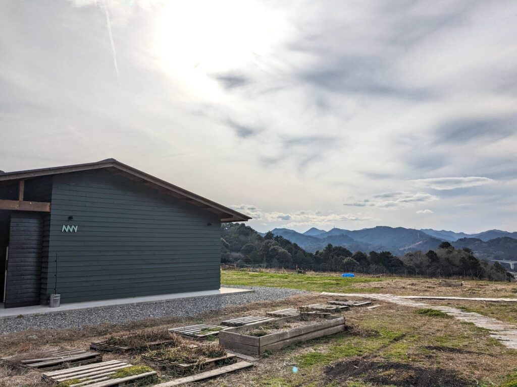 VISONの中では高い場所にあるので見晴らしも良く、三重県の山々と空に浮かぶ白い雲、畑の緑のコントラストが心にしみる素敵な空間です。
