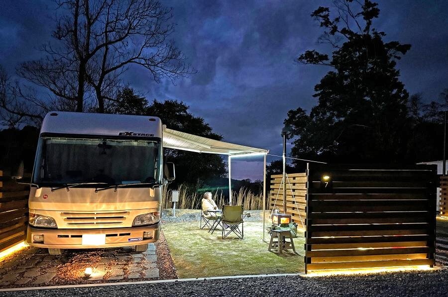 電源やフリーWiFiを完備したサイトで、バックオーニングやたき火も楽しむことができます。