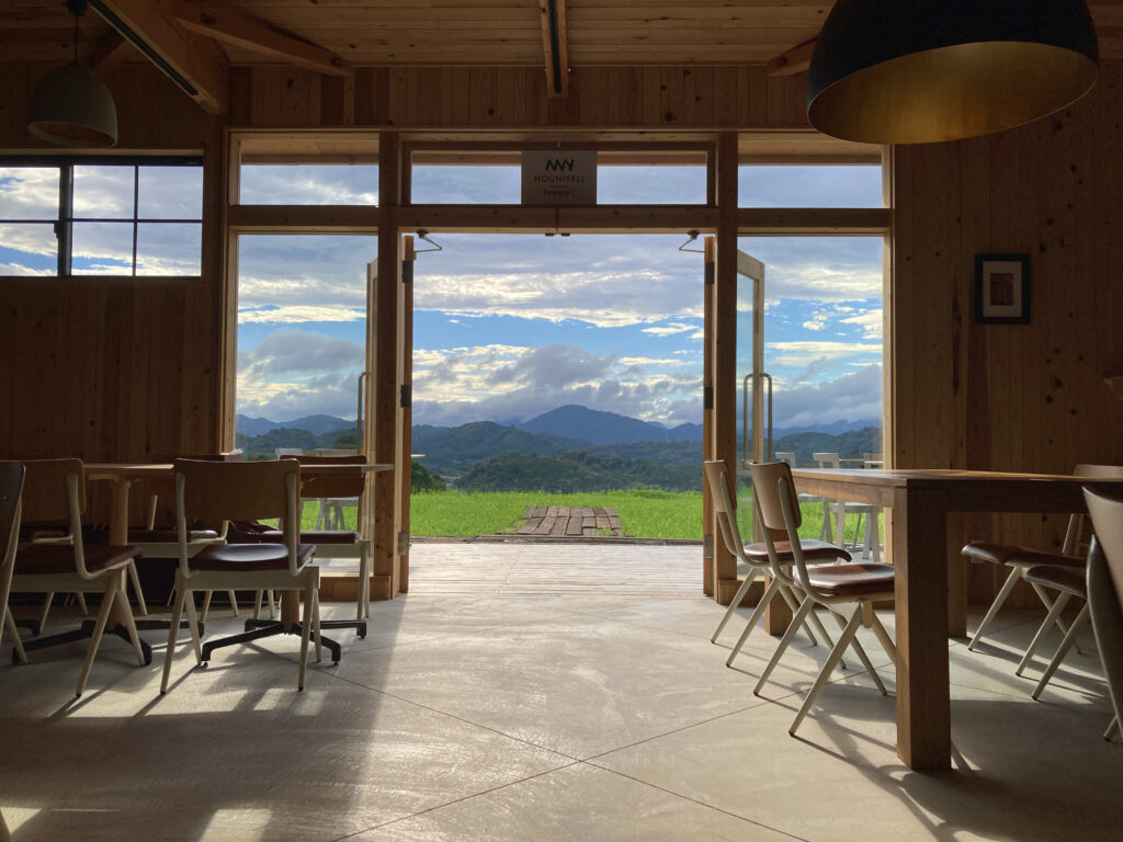 ノウニエールの目の前には農園エリアとともに、自然豊かな山々が一望できる開放的な空間があります。