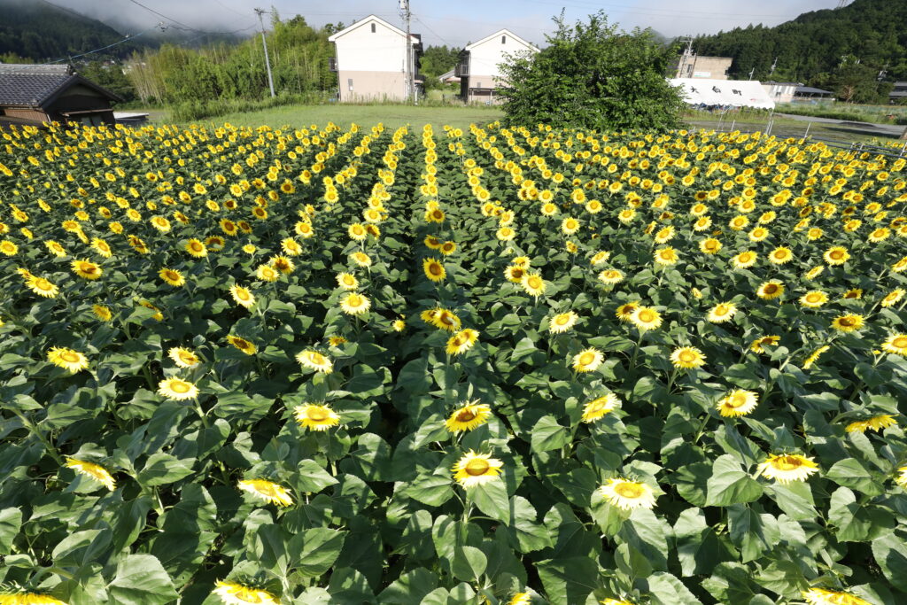 そんな小掠さんと撮影を楽しんできたのが、見頃を迎えたばかりの大台町B&G海洋センター前「弥起井の向日葵」です。
