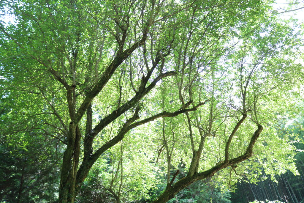 この樹木は、「マメナシ」。日本の野生ナシの一種で、三重県指定希少野生動植物種であり多気町指定文化財になっています。 珍しい木であることから大正十一年に国の天然記念物に指定されています。 大きく枝葉を広げ、空を覆いつくさんとばかりにその存在感は圧巻でです。