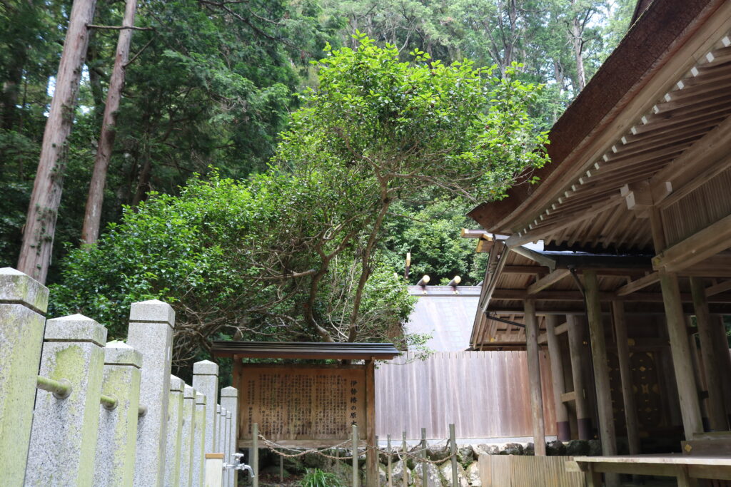 丹生神社の拝殿横にひっそりと生育する「伊勢椿の原木」。こちらも多気町指定文化財。江戸時代の代表的な植物図鑑である「本草図譜」にも描かれており、古くから有名で観賞用として注目され、郷土を代表する名木と云えよう。
